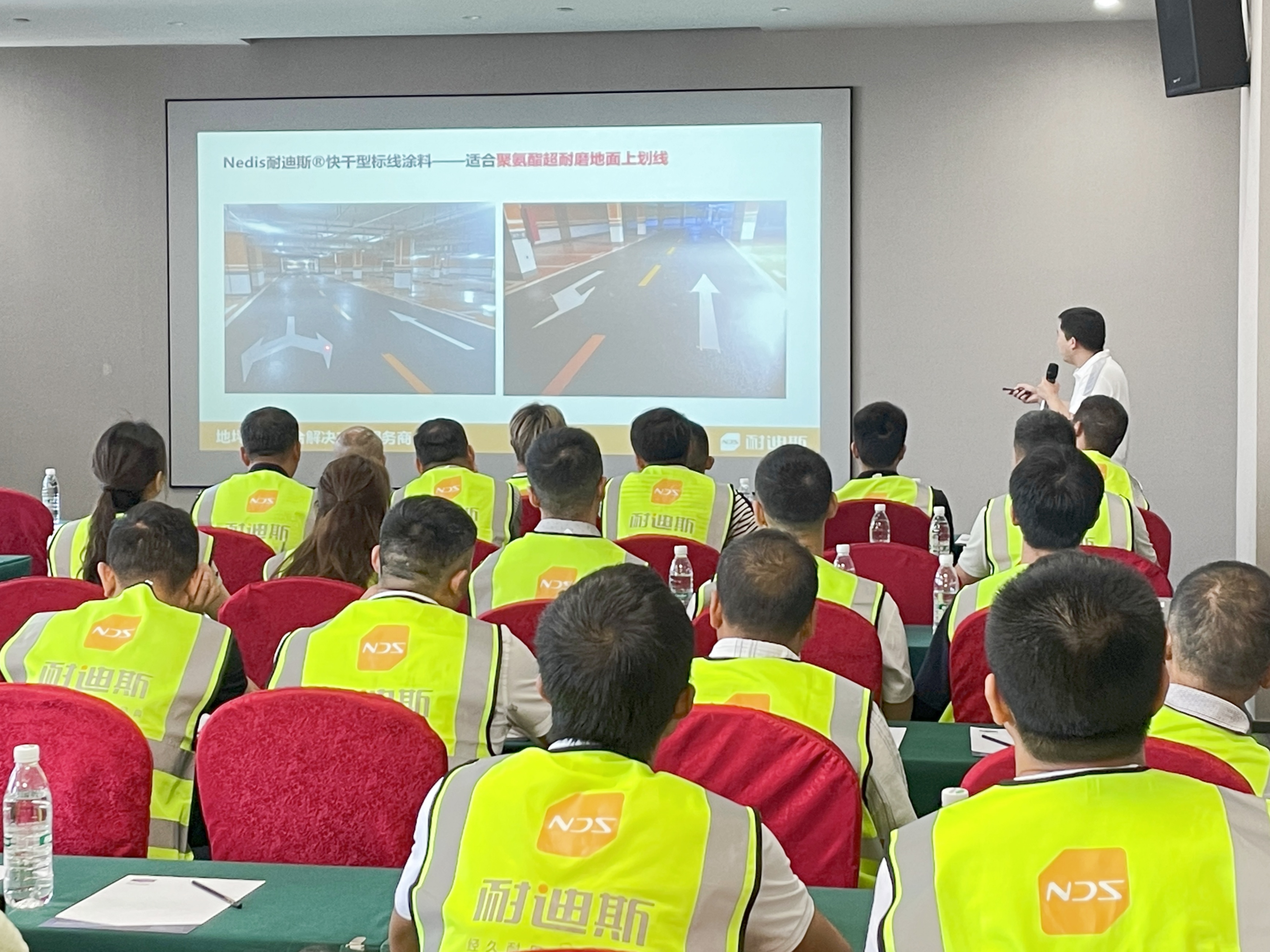 交流会首先进入专题授课环节。Nedis耐迪斯技术总工徐工率先登场,他深入浅出地介绍了划线漆的出色性能与实操技巧,使参会者能够迅速吸收并应用于实践。