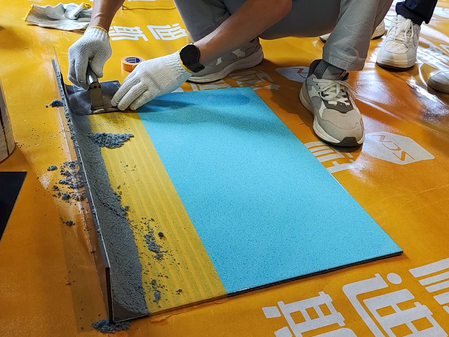 ▲防静电系列地坪实操演示