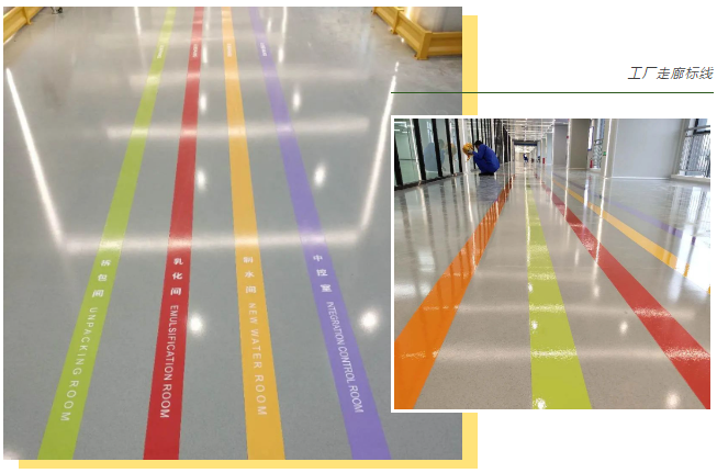 彭氏化妆品生产车间与走廊地面特意选用了较为丰富的色彩,打造出鲜明的设计风格和独特的美感,以提高工作人员的使用体验。