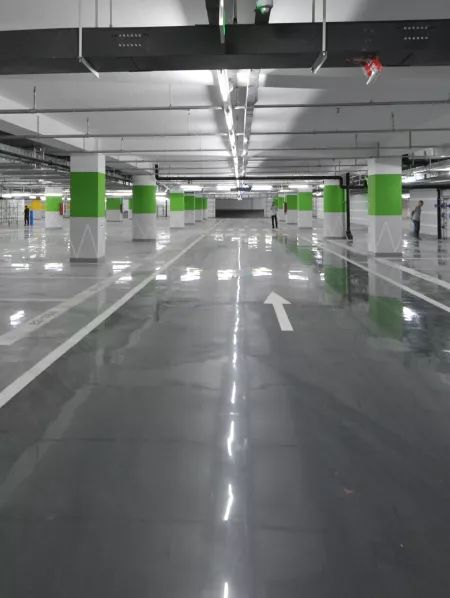 项目:杨箕村复建房地下车库升级改造工程,80000m²,选用混凝土密封固化剂地坪。